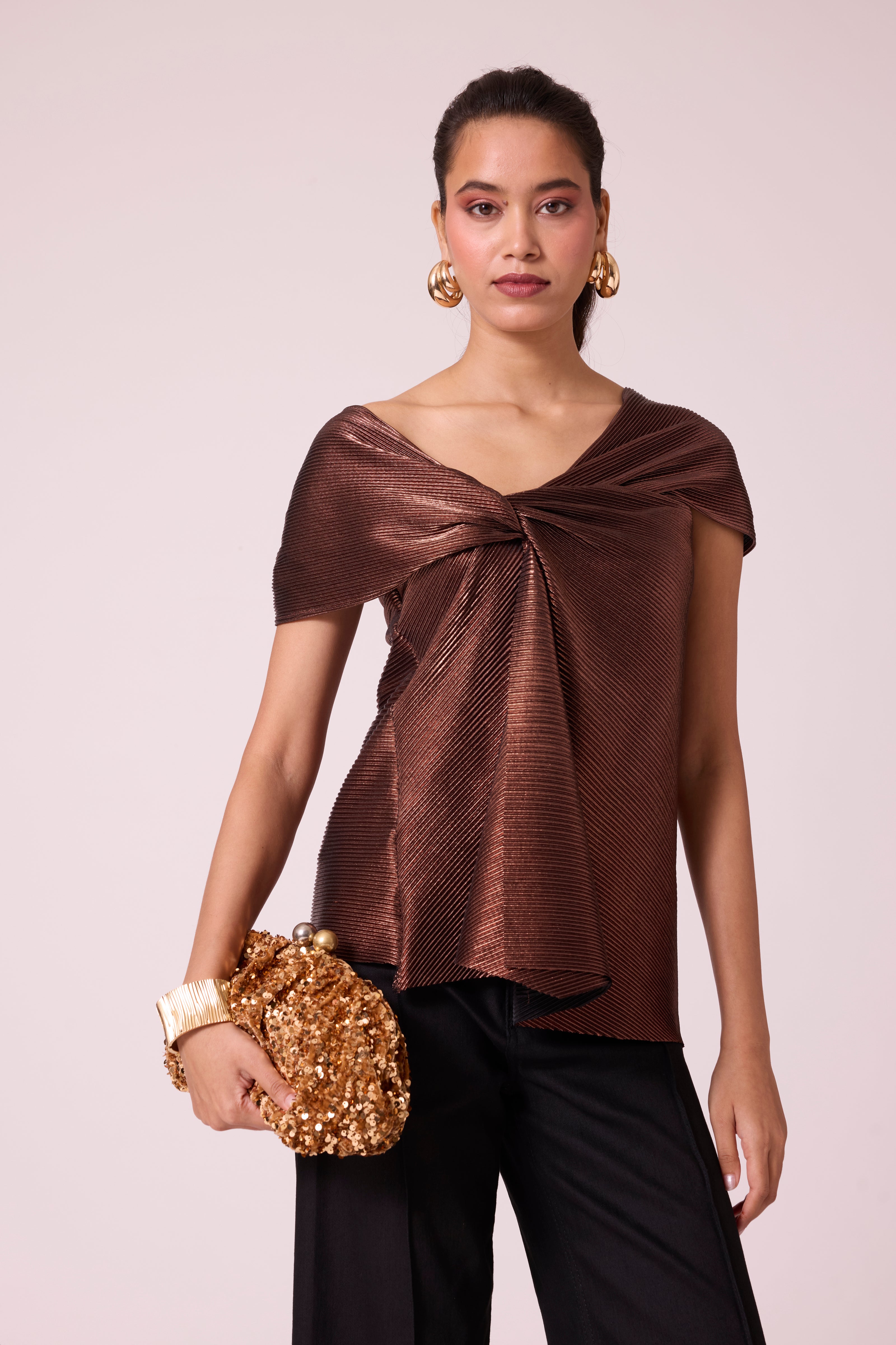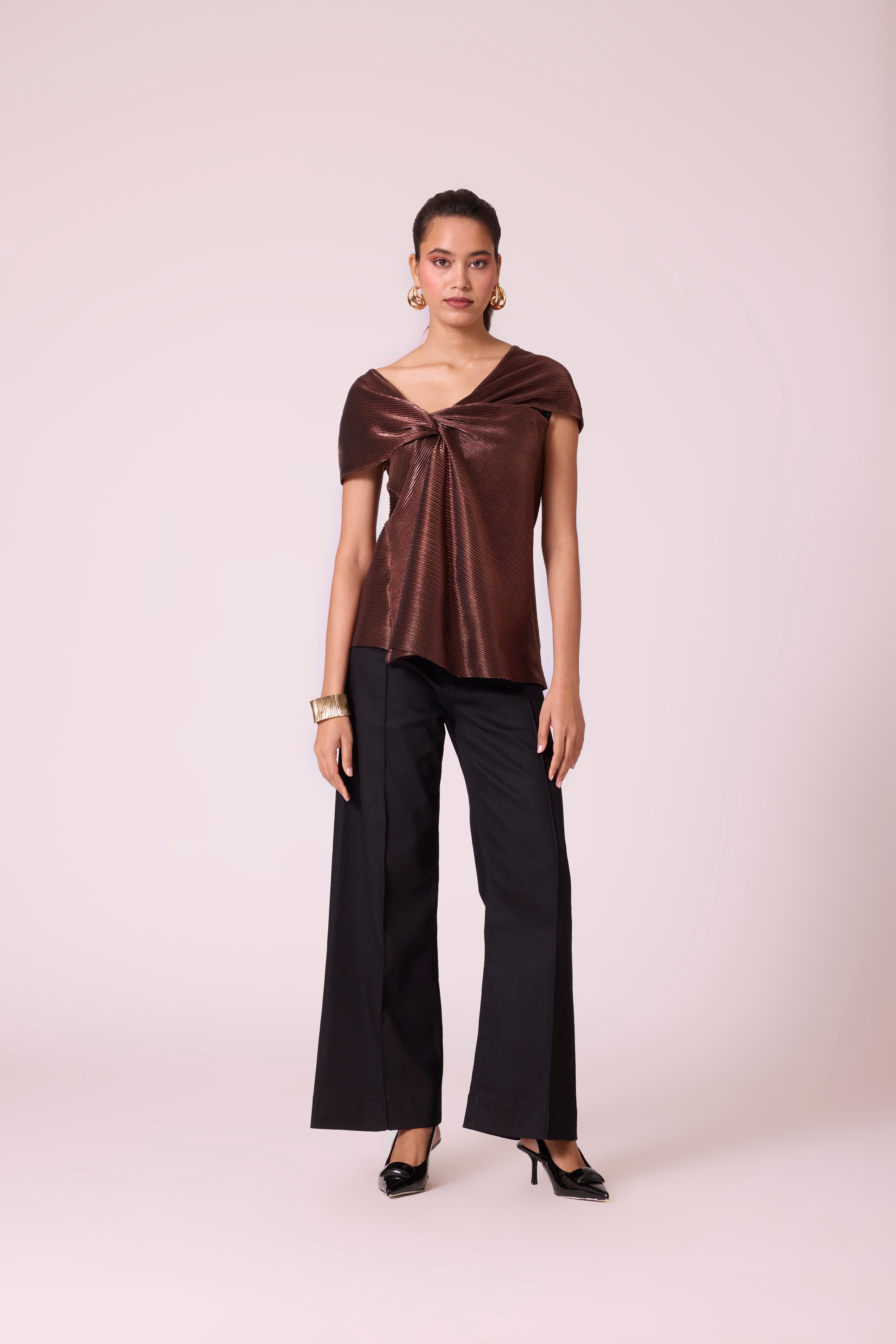 Charming easy asymmetrical top with manipulatable sleeves. Can either be worn strappy as an halter or opened to cap the sleeves. Either ways it makes for a statement top.