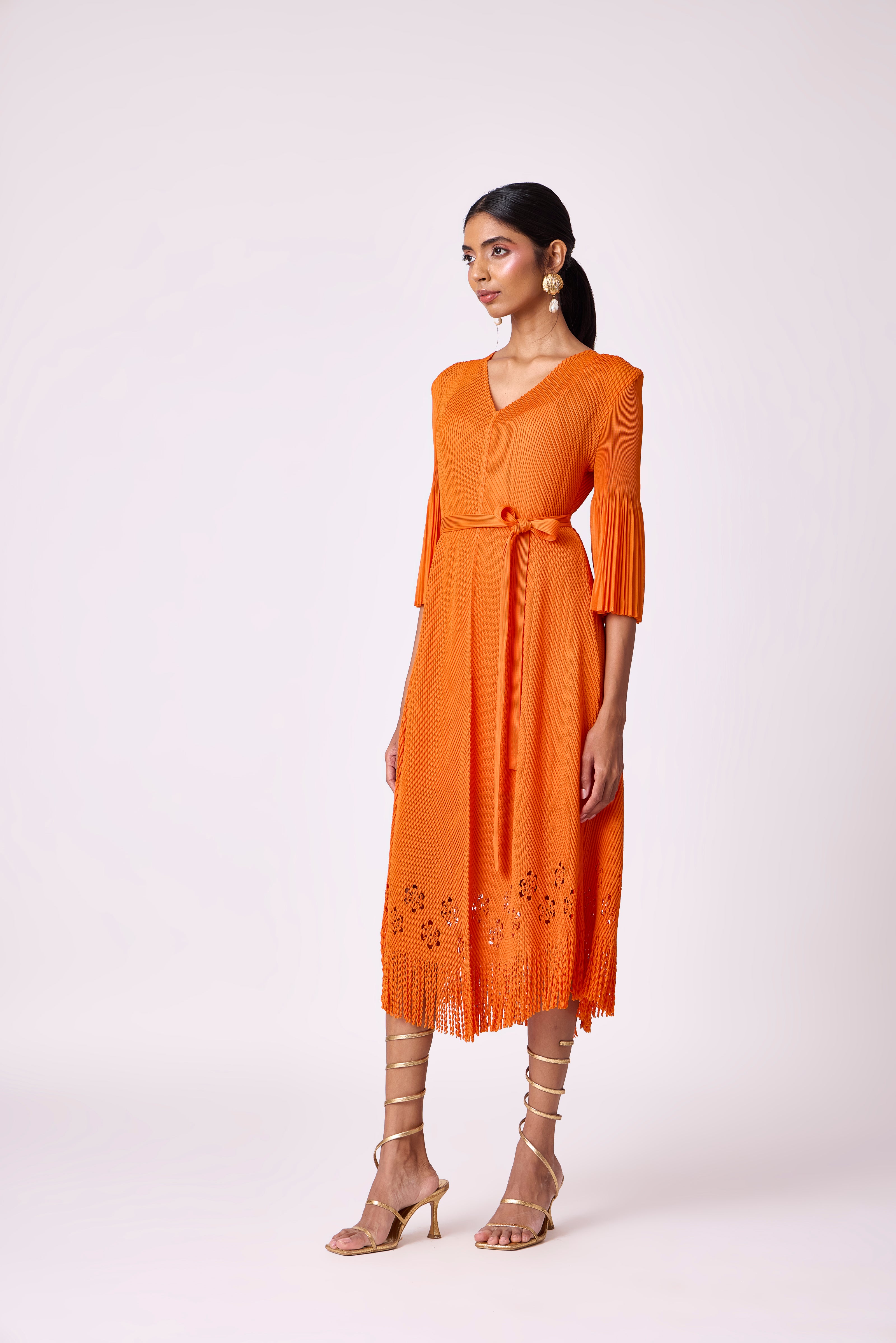 Mila Cutwork Dress - Orange