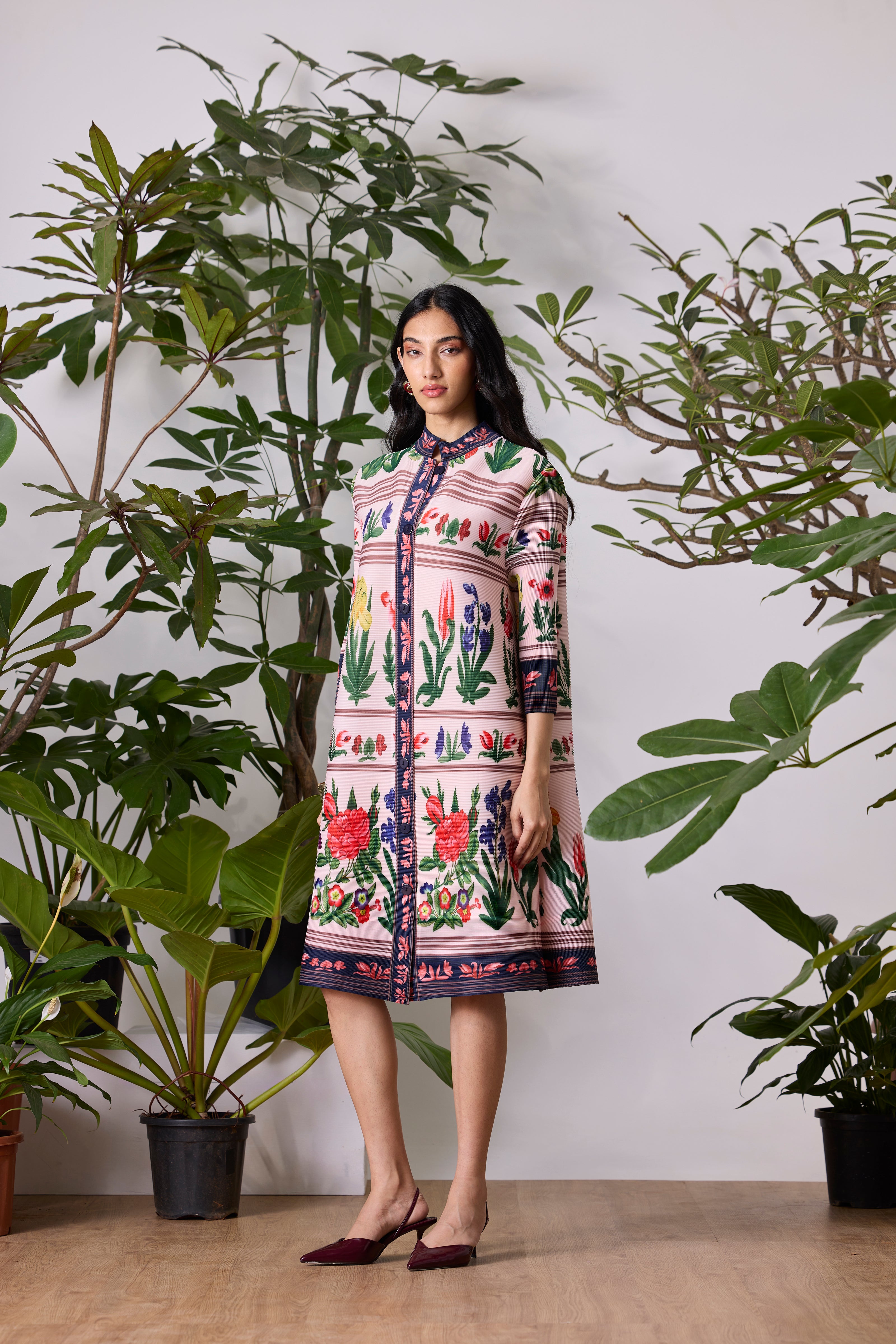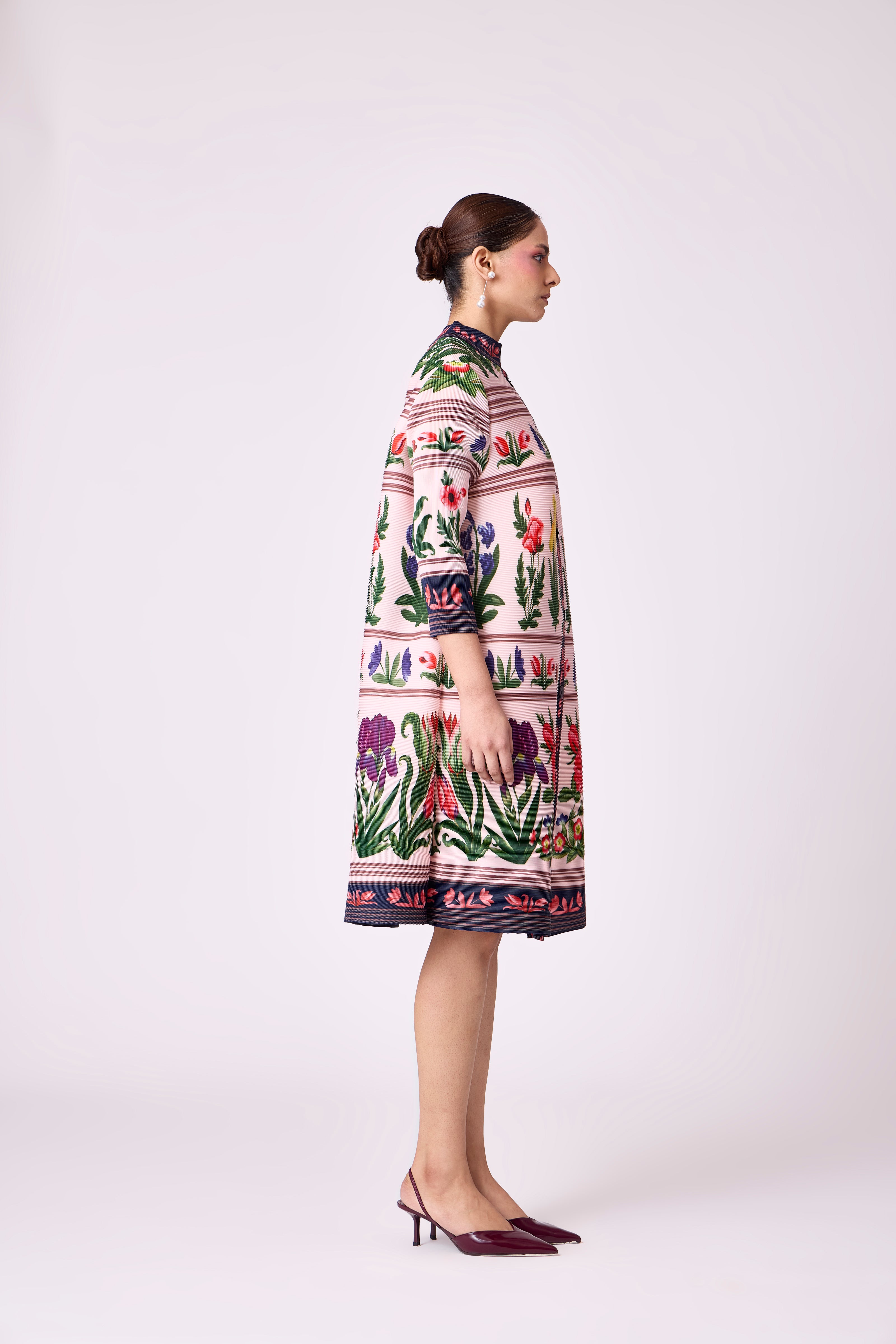 Our classic soft micro pleated shirt dress in a new summer art deco floral print