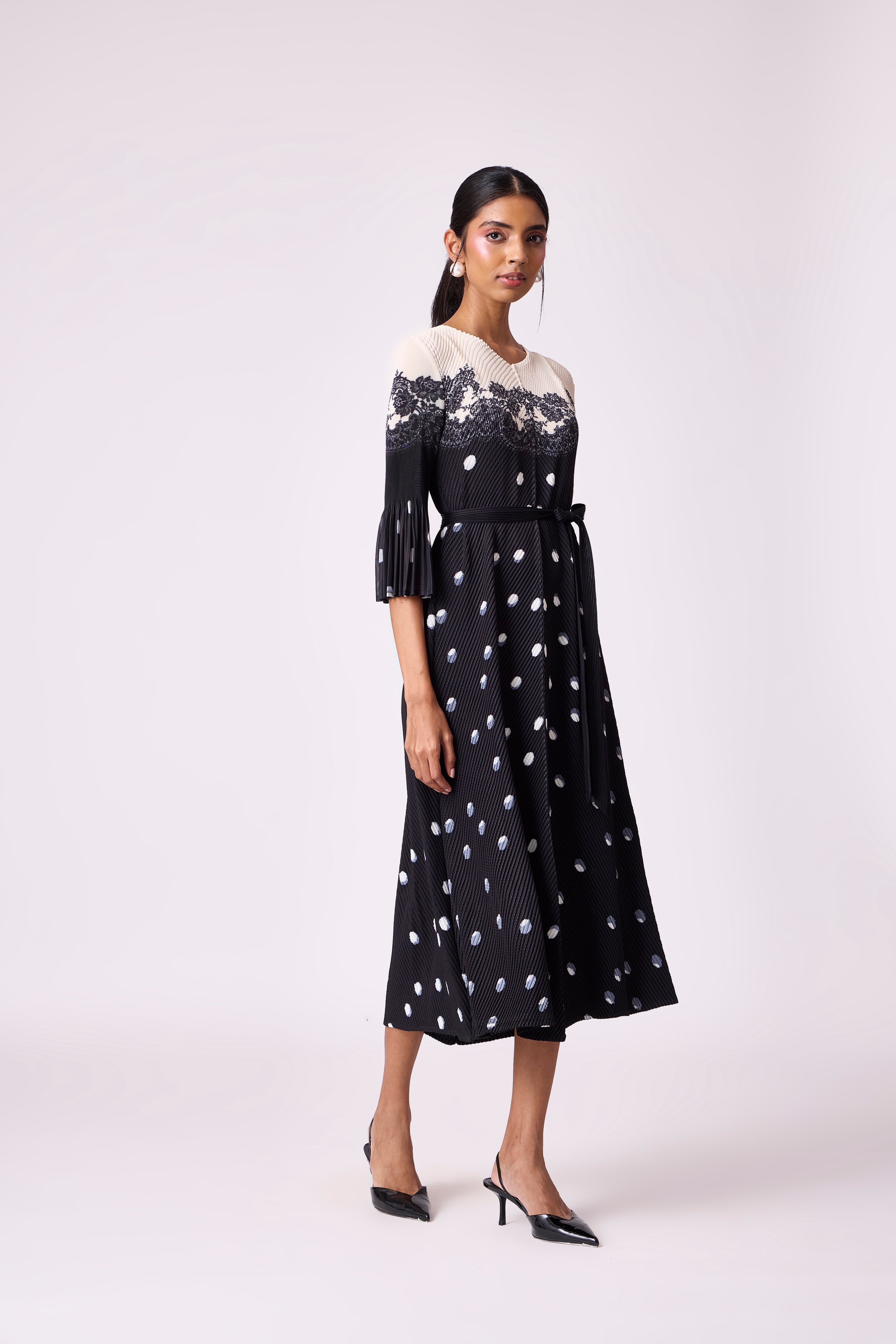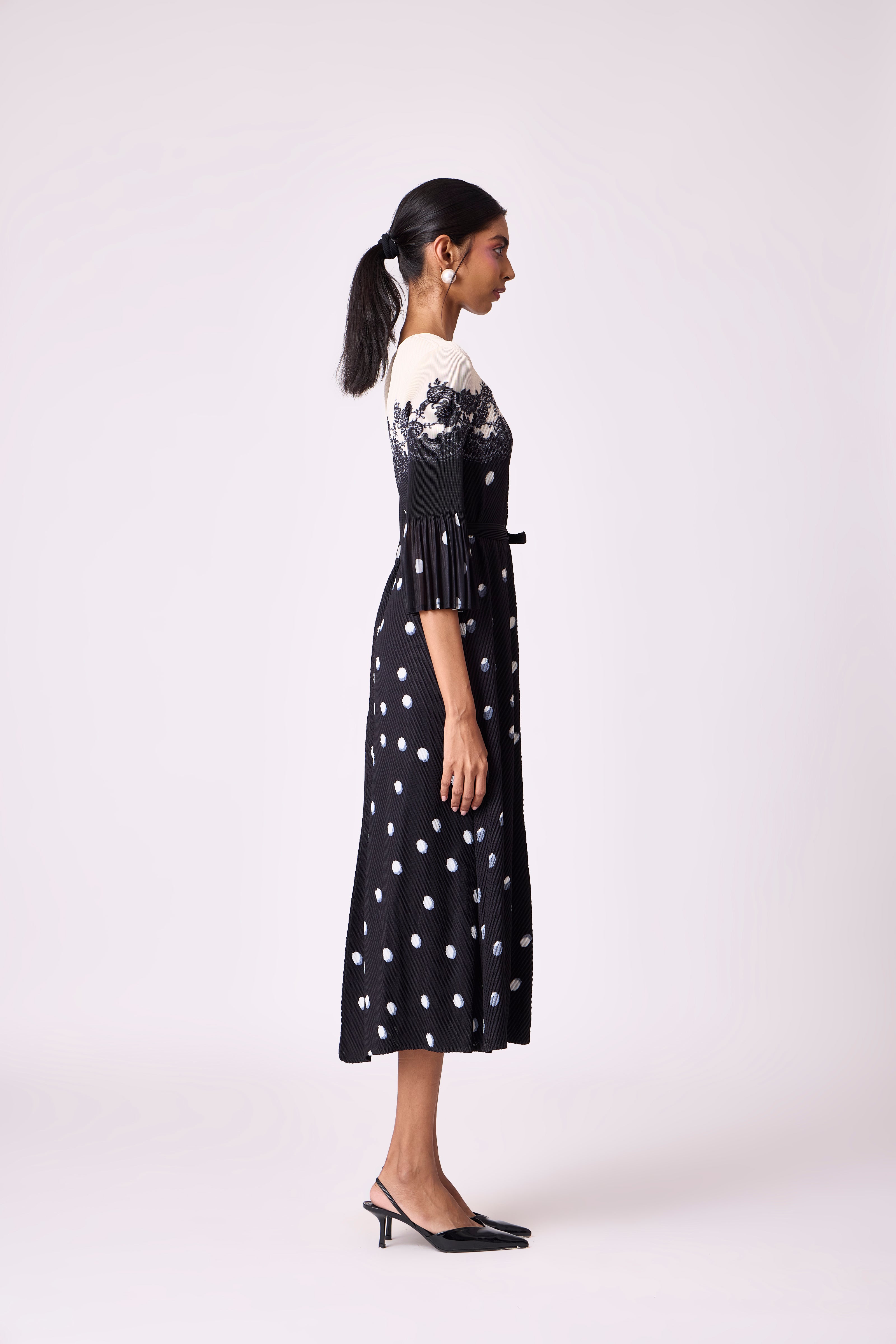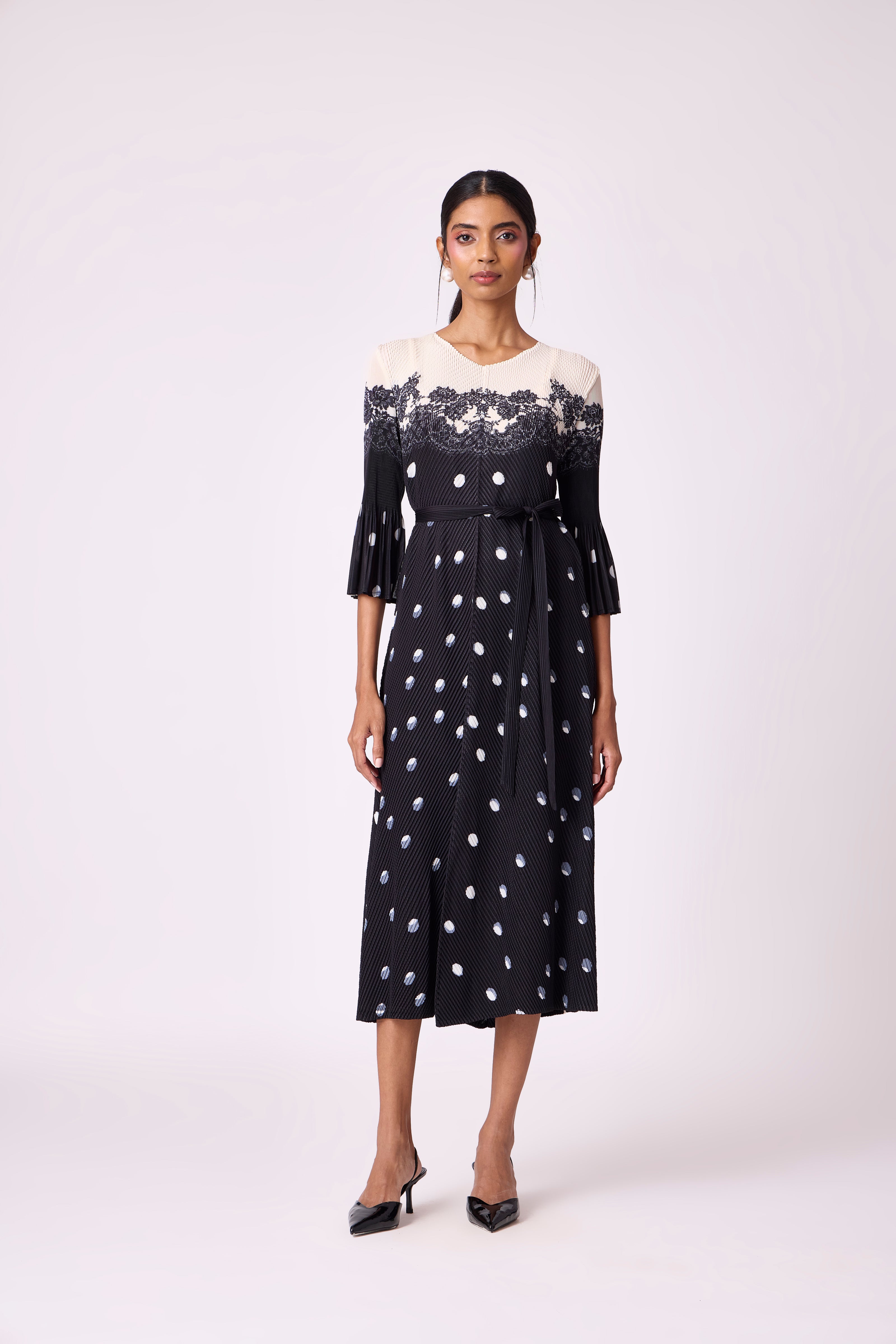 Splatter and tiny dots and print imprints on pleated garments are part of the pleating process, especially on light colours can not be avoided. These are not considered garment defects as due to nature of the pleating process, it is impossible to avoid mild anomalies.