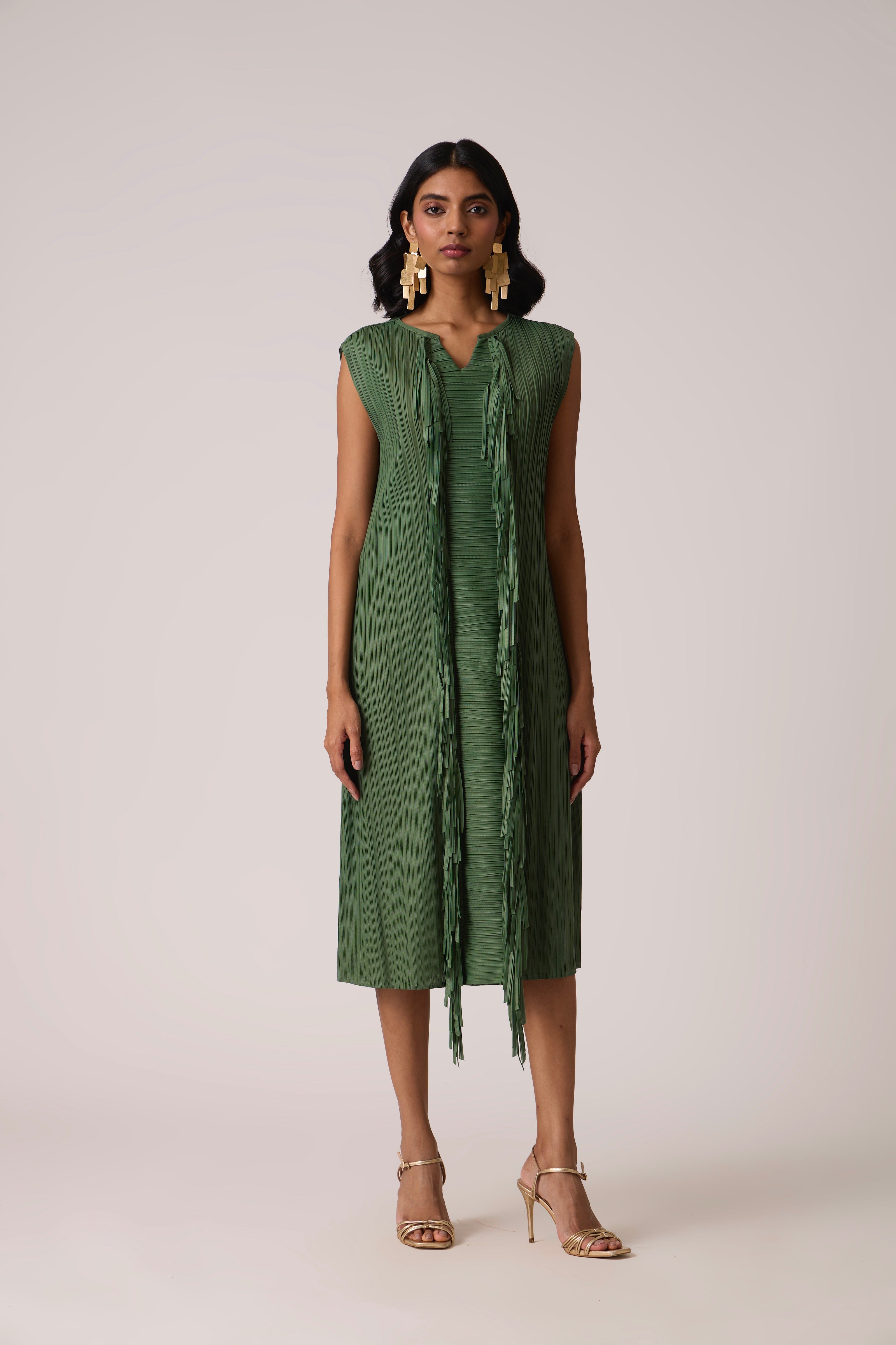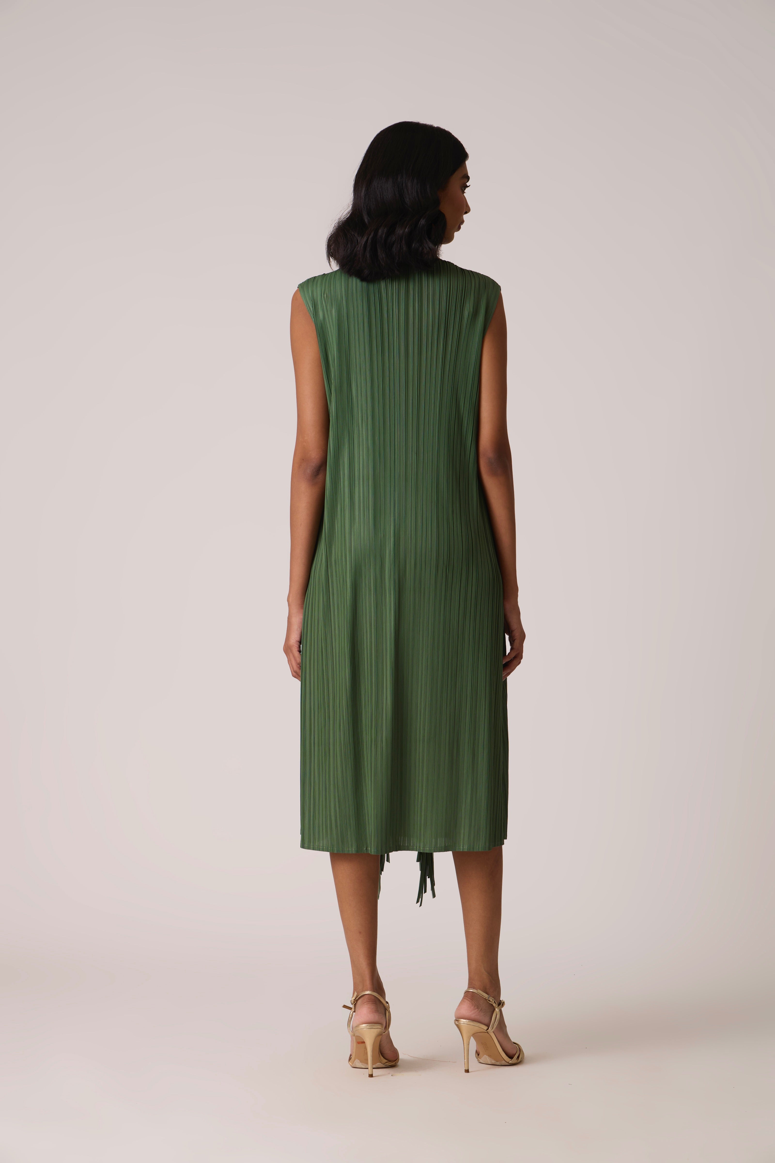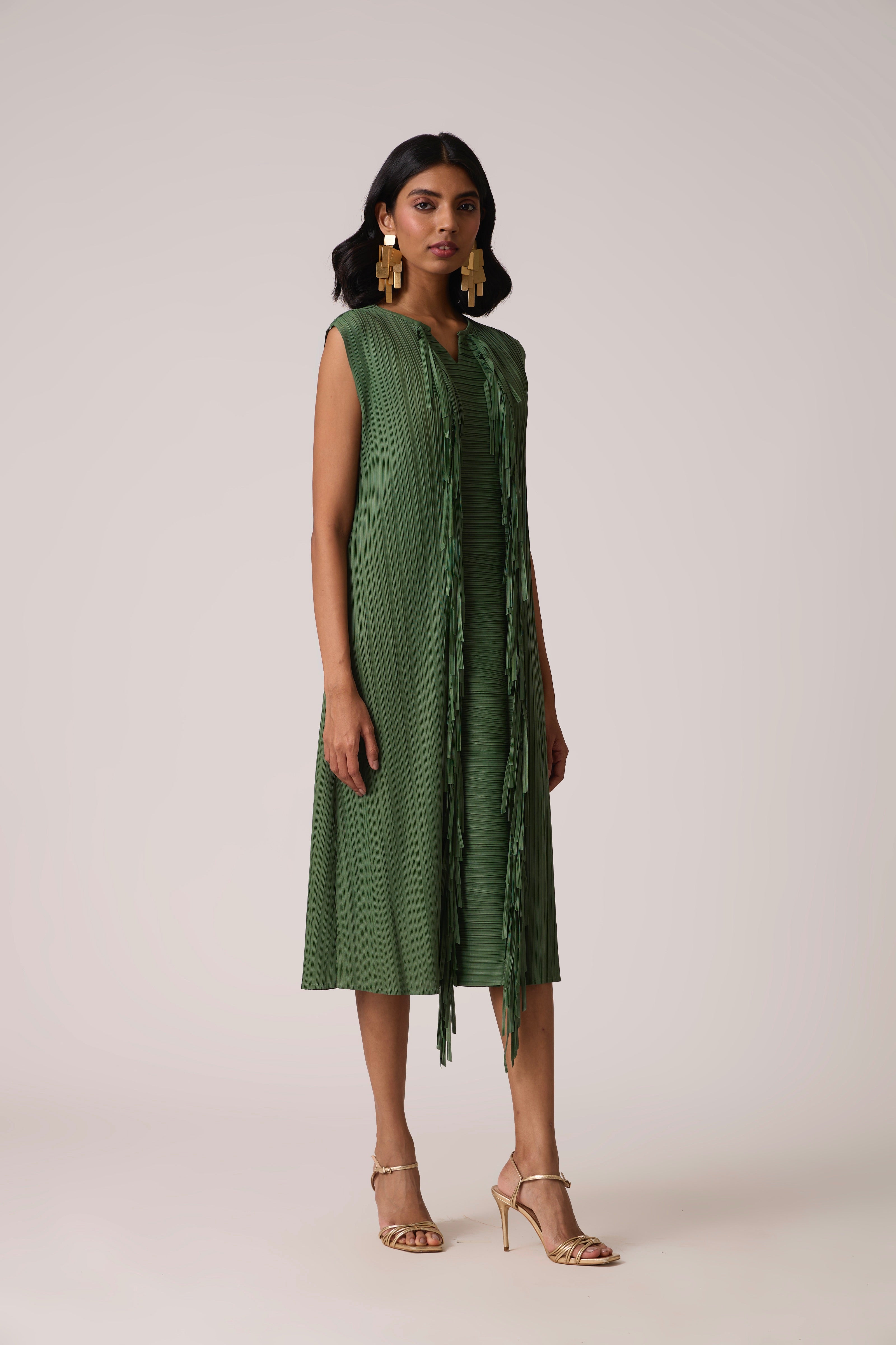 Pleated clothing expand to accommodate a variety of body sizes. Due to their texturing they do not cling or accentuate body parts.