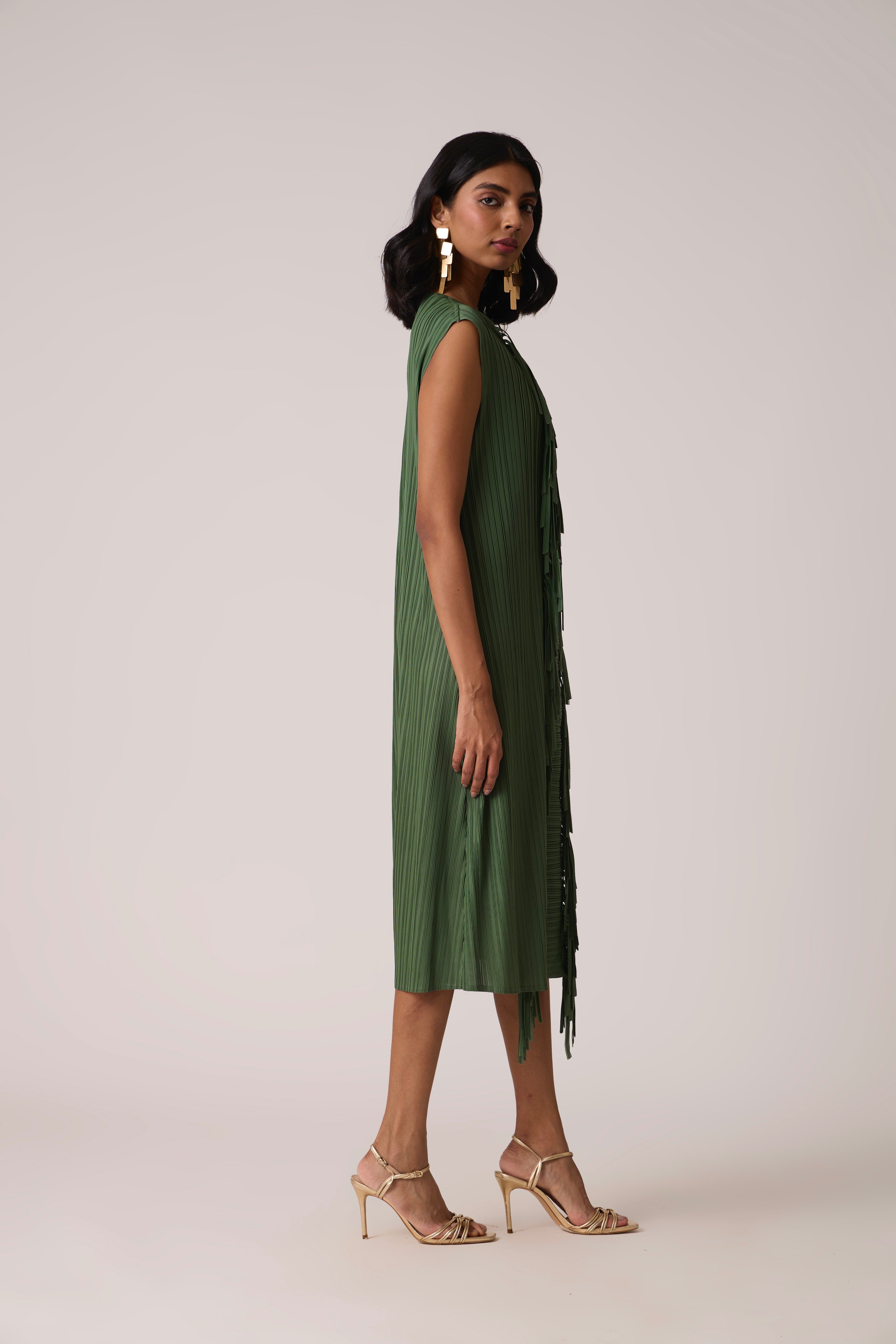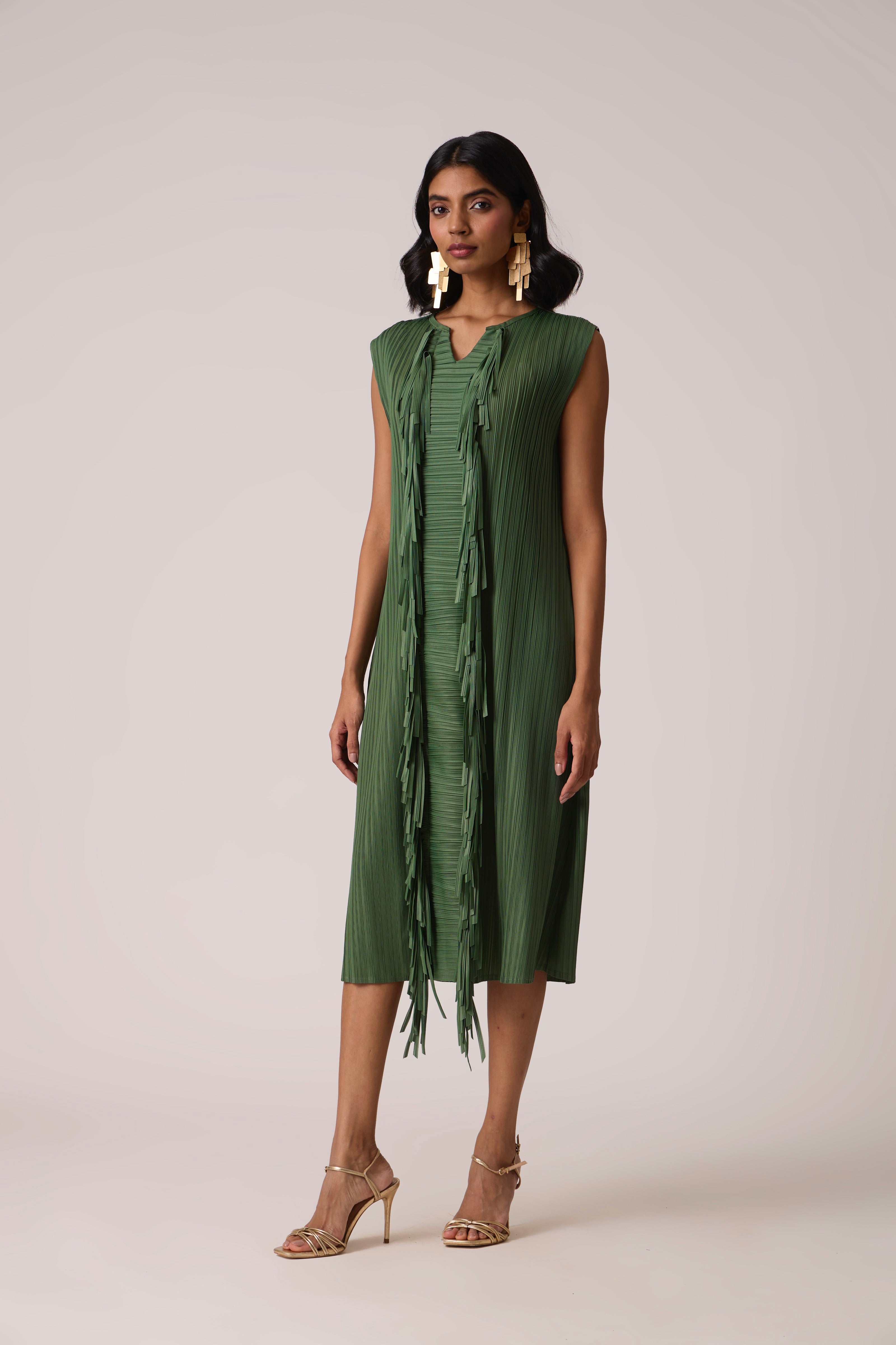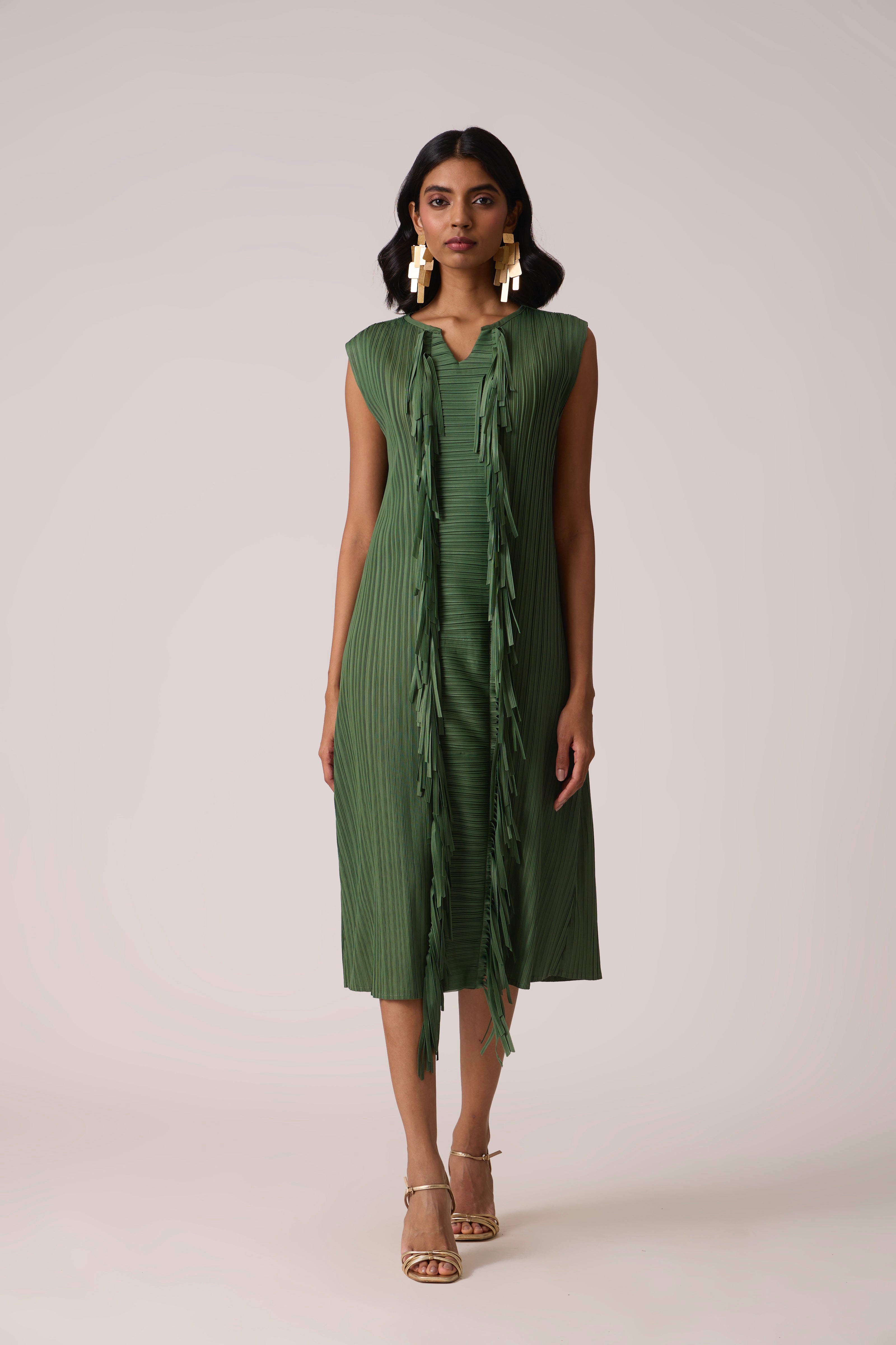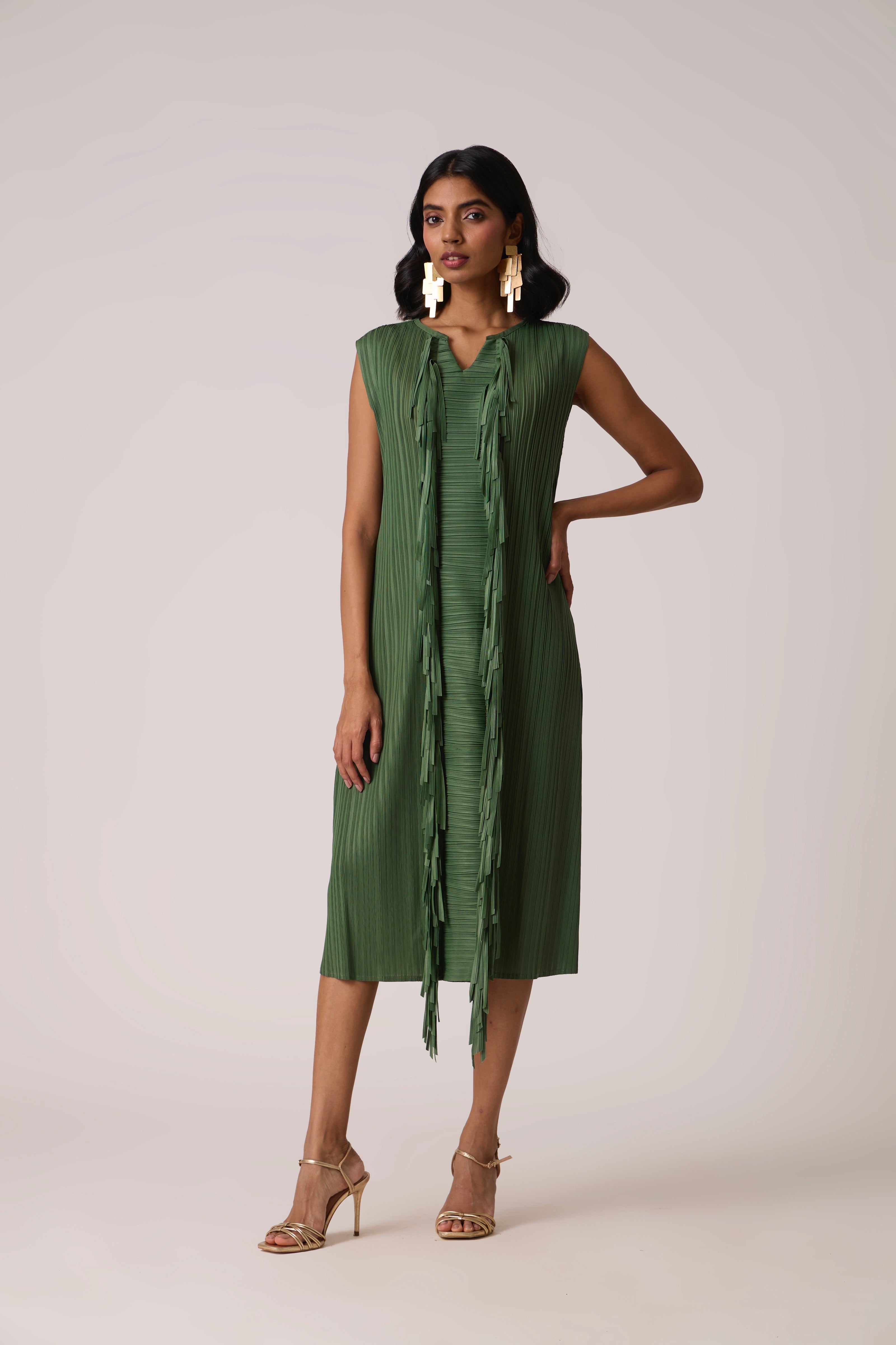 Pleated clothing expand to accommodate a variety of body sizes. Due to their texturing they do not cling or accentuate body parts.