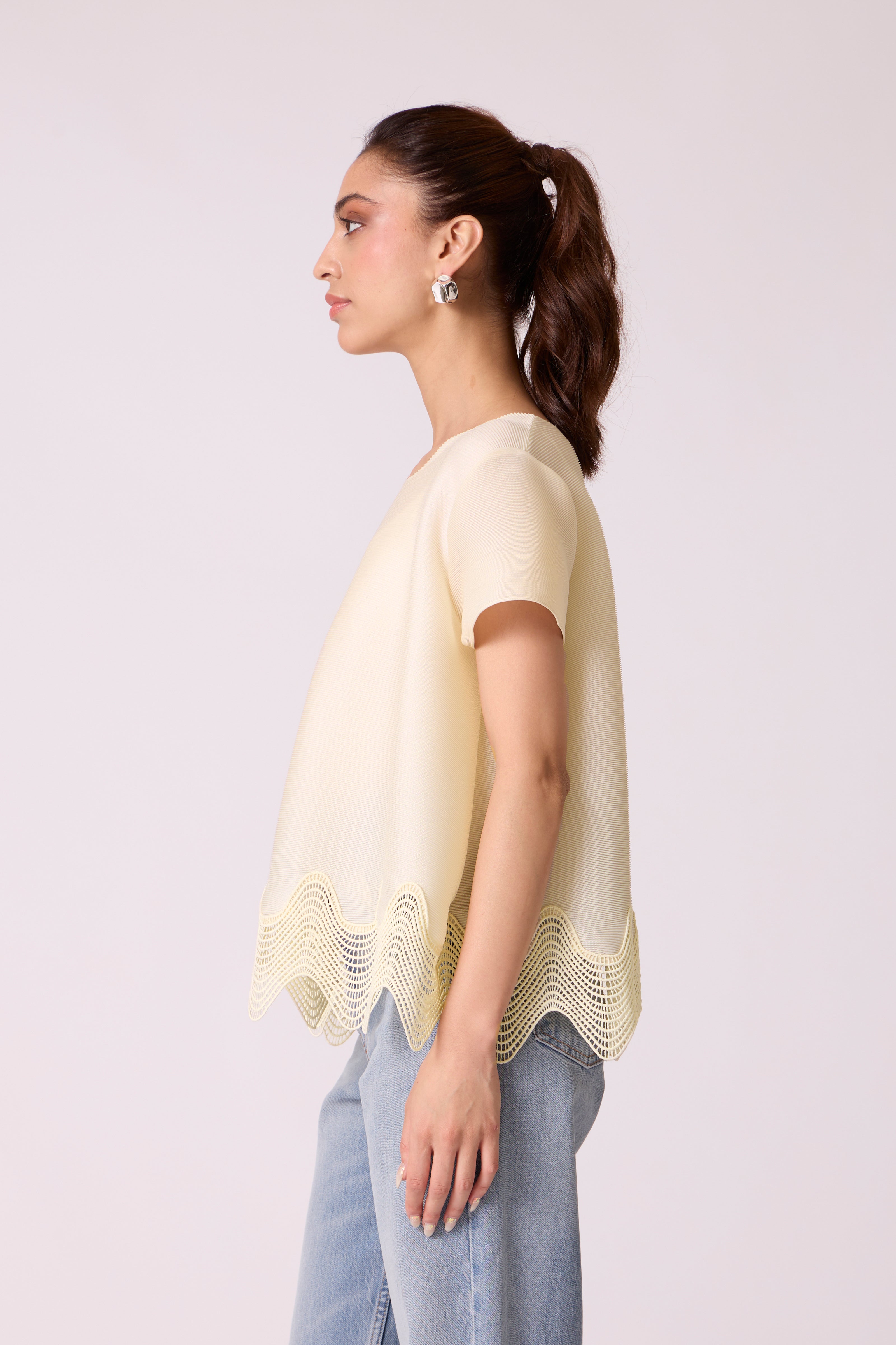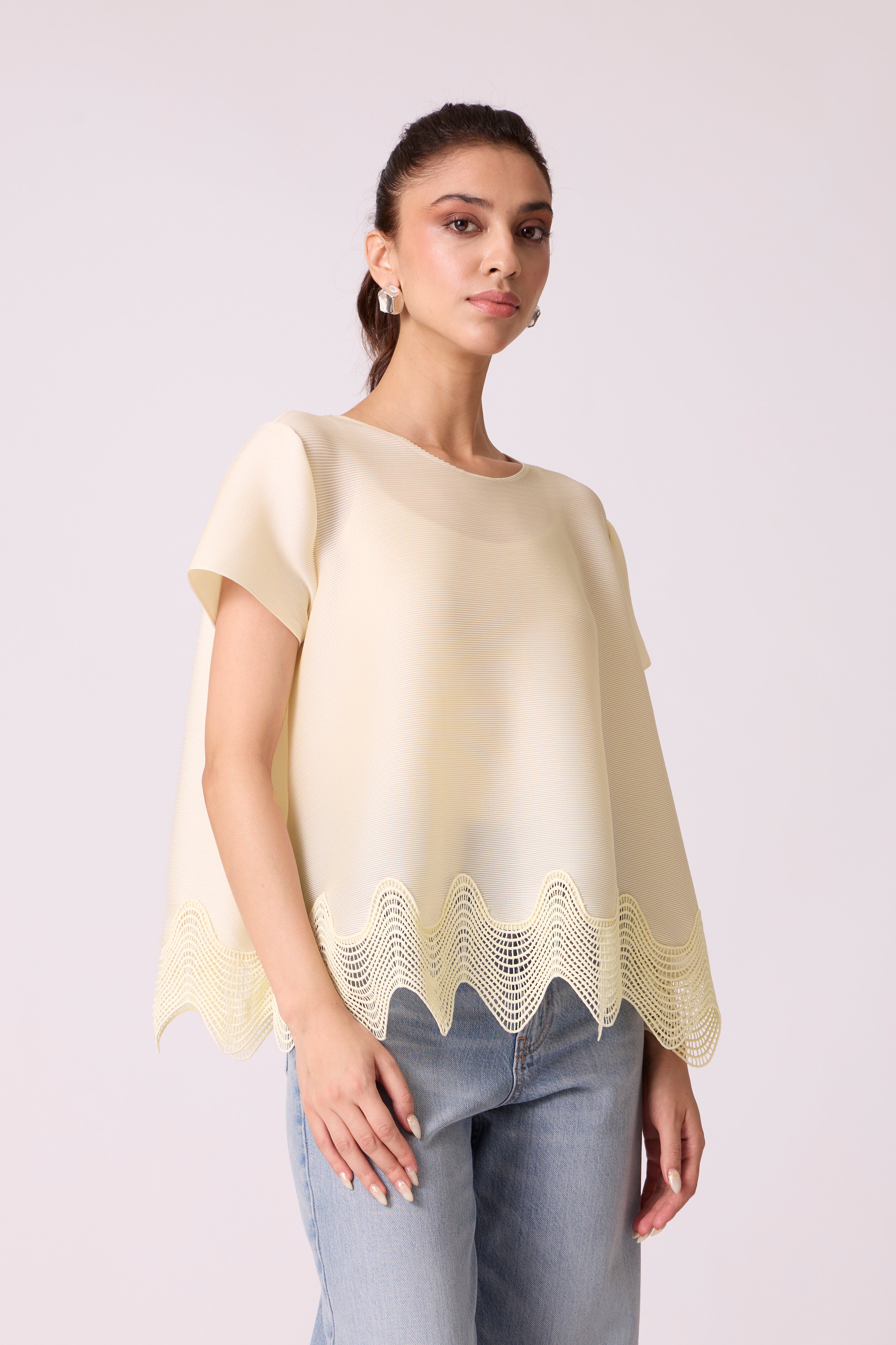 Splatter and tiny dots and print imprints on pleated garments are part of the pleating process, especially on light colours can not be avoided. These are not considered garment defects as due to nature of the pleating process, it is impossible to avoid mild anomalies.
