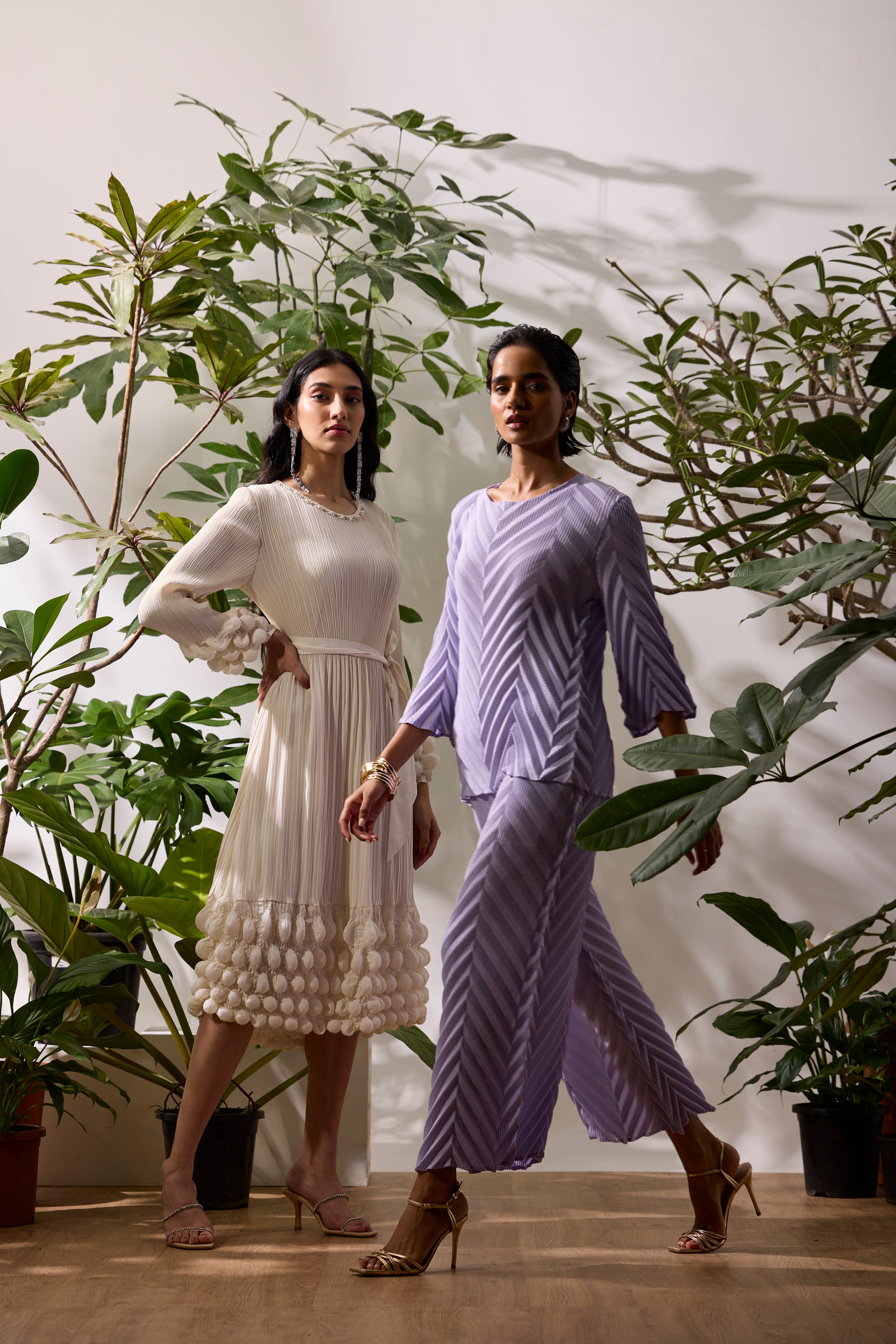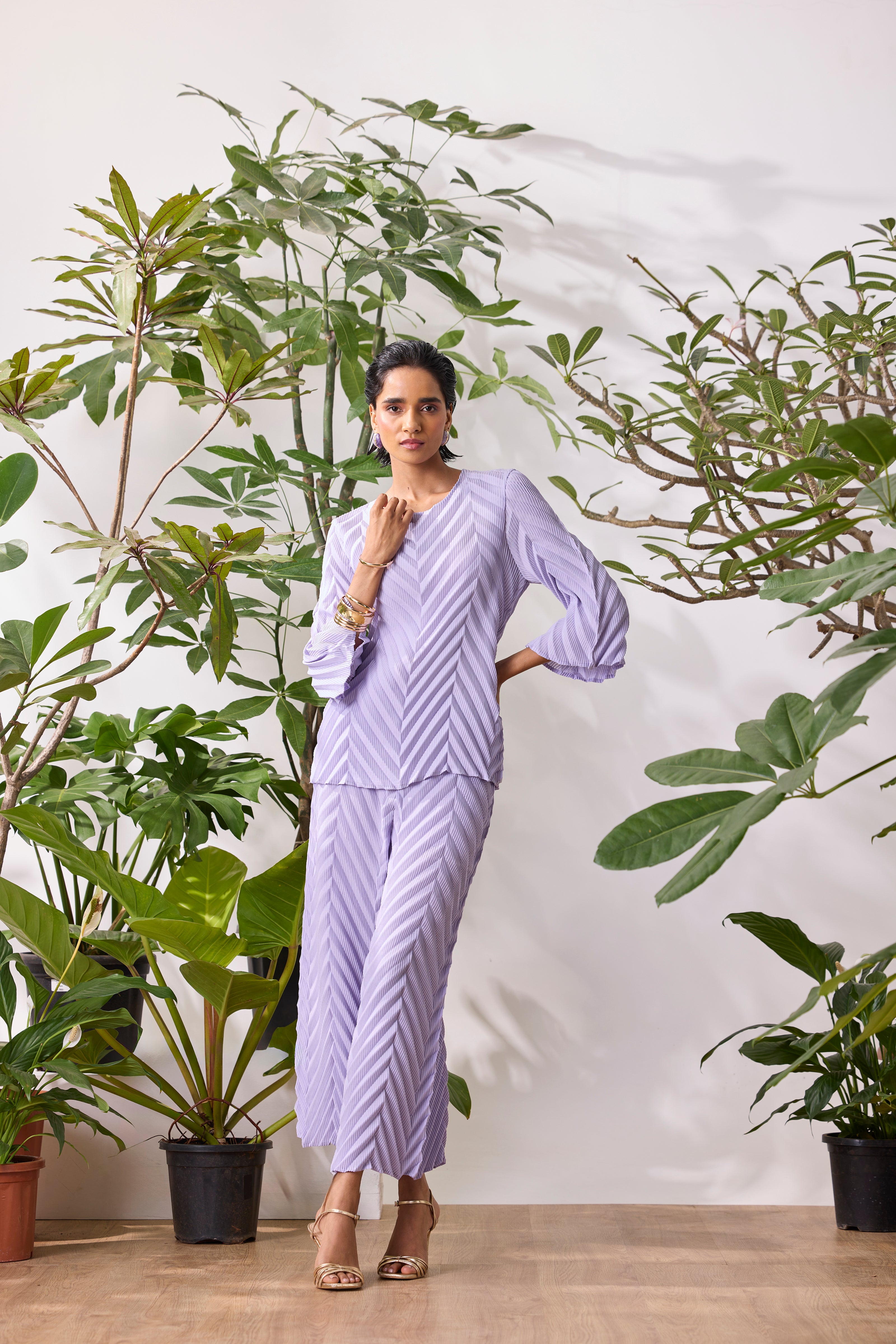 Chevron pleated classic Co-ord set in a high quality fabric.